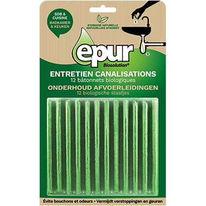 Epur Biological Drain Sticks keep your kitchen and bathroom drains clean naturally. 100% eco-friendly, chemical-free, using enzymes and non-pathogenic bacteria. Prevents clogs and bad odors – easy to use monthly.