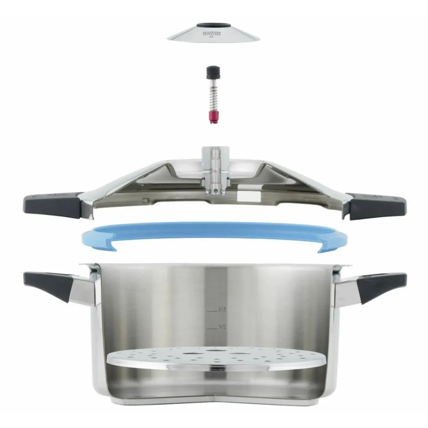 The safety window serves as the final release mechanism. The rubber seal is pushed out of the safety window at an excess pressure of 3.4 bar. This way steam can escape safely and effectively.