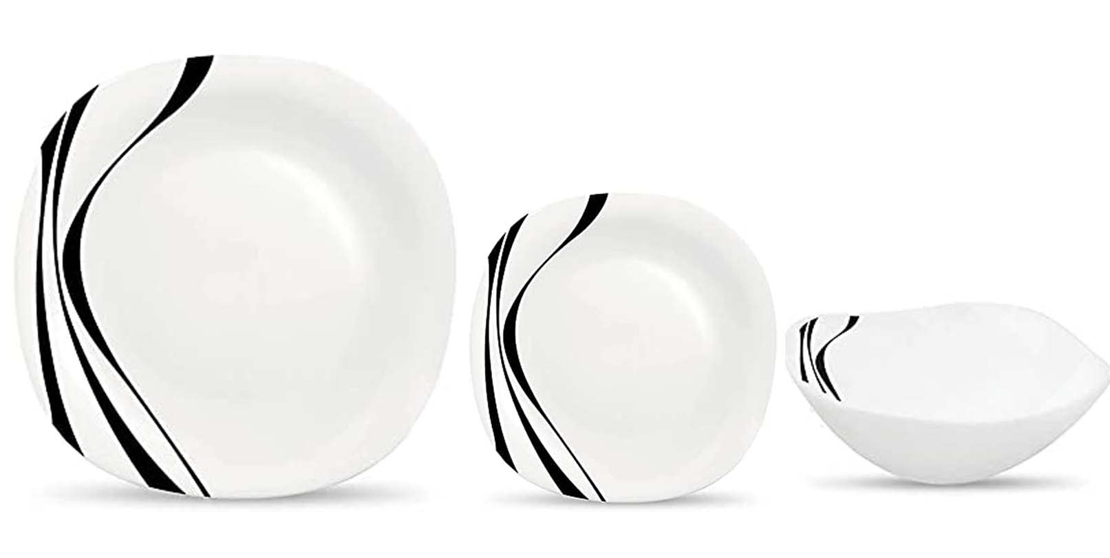 La Opala Diva Midnight 18pc Dinner Set is tough, scratch-resistant, microwave and dishwasher safe. Lightweight, stackable, 100% hygienic and bone-ash-free, perfect for everyday and special dining occasions.