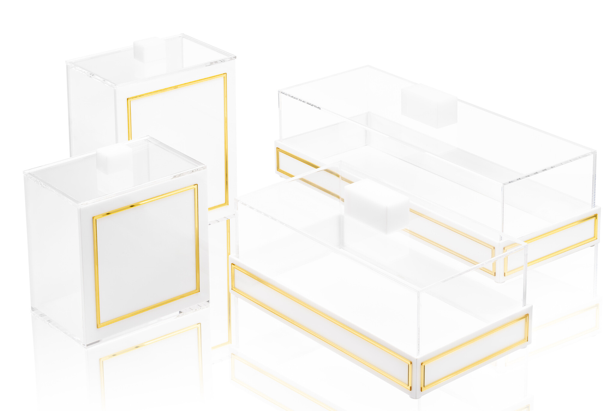 Lucite Rectangle Cake Display - Gold Rim