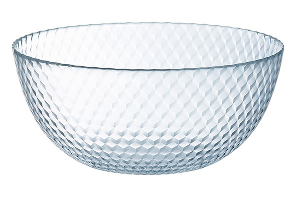 The transparent 24 cm glass bowl from the Pampille collection impresses with its geometric pattern. Resistant tempered glass is a 100% health-friendly material. It does not contain cadmium and lead. The salad bowl can be washed in a dishwasher and can be used in microwave ovens.