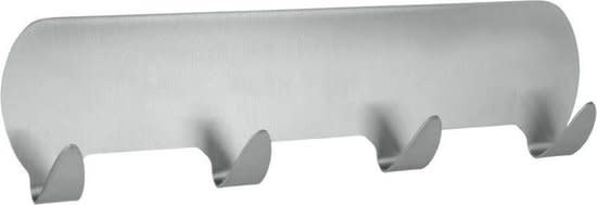 Self-adhesive stainless steel hook strip, no drilling required. Requires flat, grease-free surface. Ideal for hanging towels in the toilet. Specifications: silver, stainless steel, 25x15 cm (LxW), 4 hooks in 1 strip.