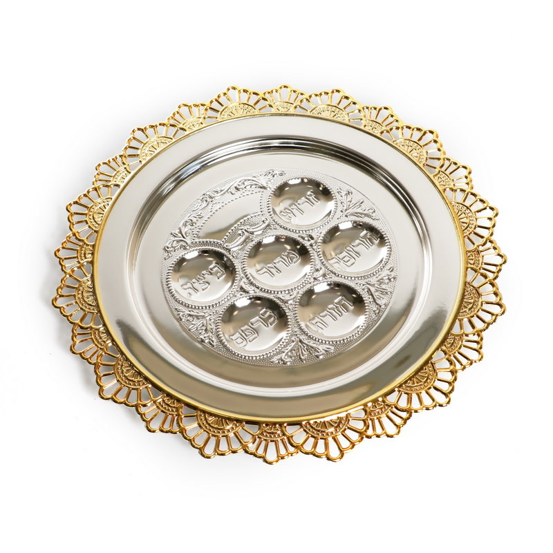 Paldinox Seder Plate (Kaareh) Silver Plate/Gold Rim