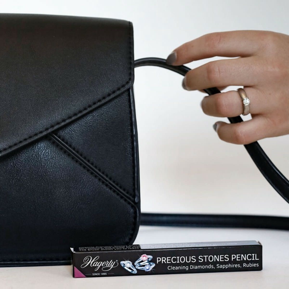 The pencil is filled with an exclusive highly-effective Hagerty formula with active ingredients, that penetrate and dissolve dirt on precious stones. The cleaning gel contains specific polishing agents and cleansers that bring back the luster.