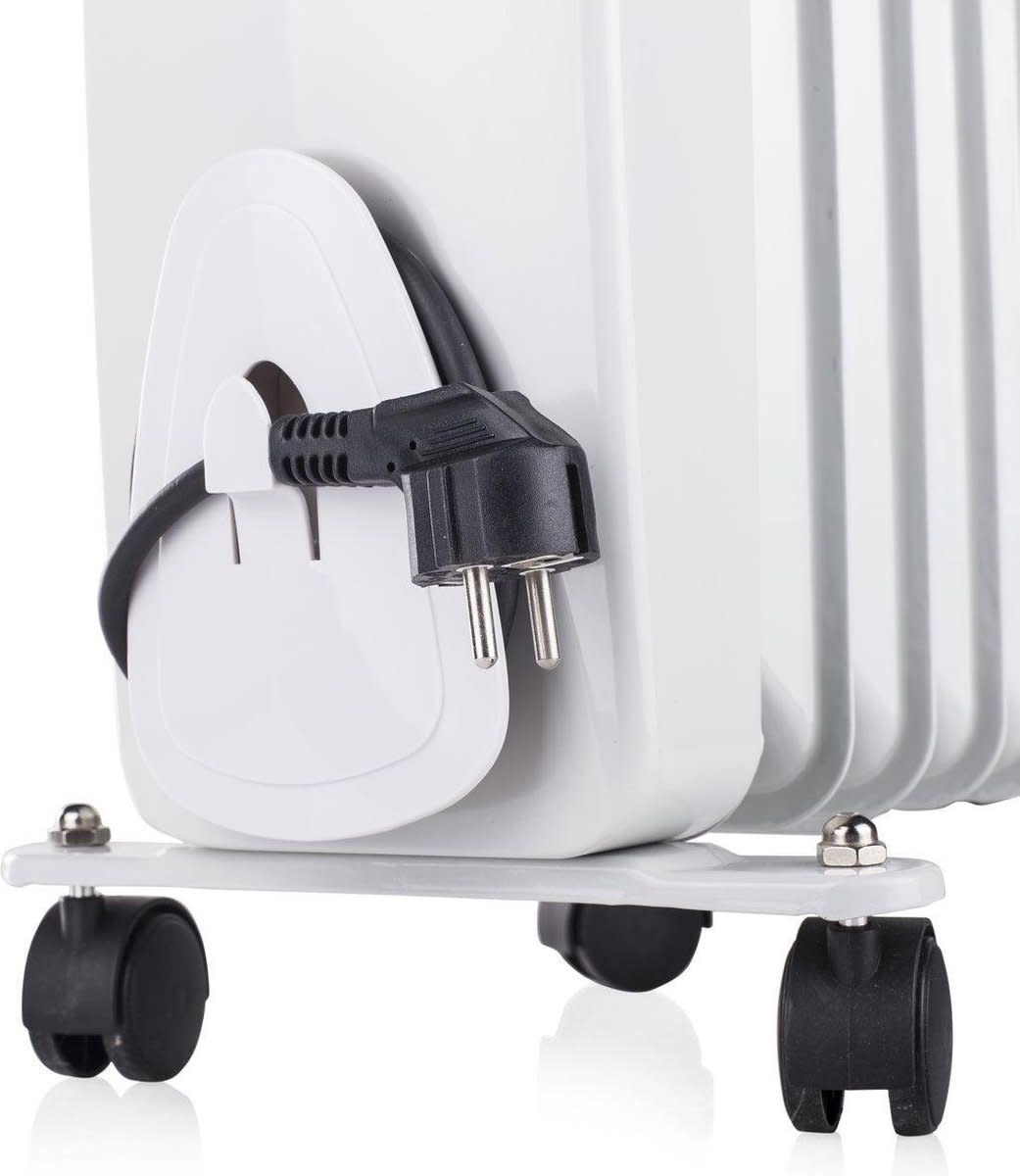 Thanks to the cord storage system and handle, you can easily move and store this radiator when it's not in use. With its lightweight design and smooth-rolling caster wheels, it's highly portable and suitable for any room in the house. Furthermore, the low energy label contributes to energy savings and lower heating costs.