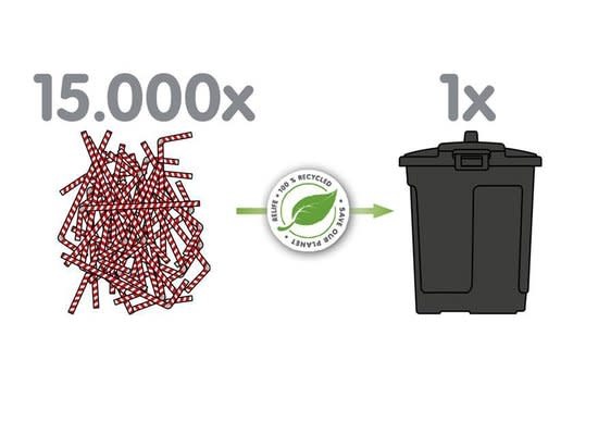 Sunware Relife Megano: 75L waste bin, 100% recycled material. Secure lid, sturdy handles. Versatile: garden, feed, rain barrel. Ideal for outdoors.