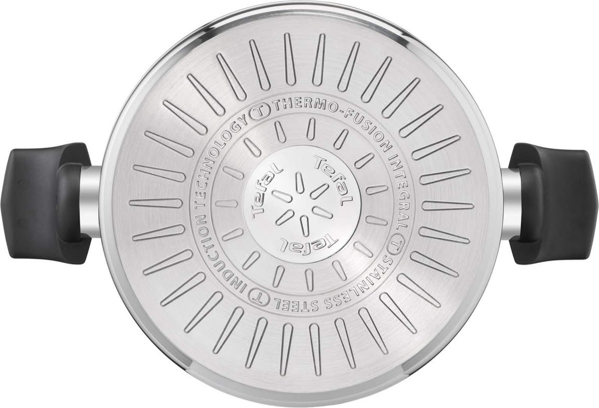 The Tefal Emotion 24 cm cooking pot is made from durable 18/10 stainless steel with an extra thick base for even heat distribution. Suitable for all heat sources, including induction, and comes with a glass lid for easy monitoring while cooking.