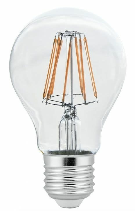 This filament LED E27 bulb consumes 4W is comparable to a 32W halogen bulb. No transformer is needed, as the LED bulb simply operates on 230 volts. This model has a burn time of 25,000 hours.