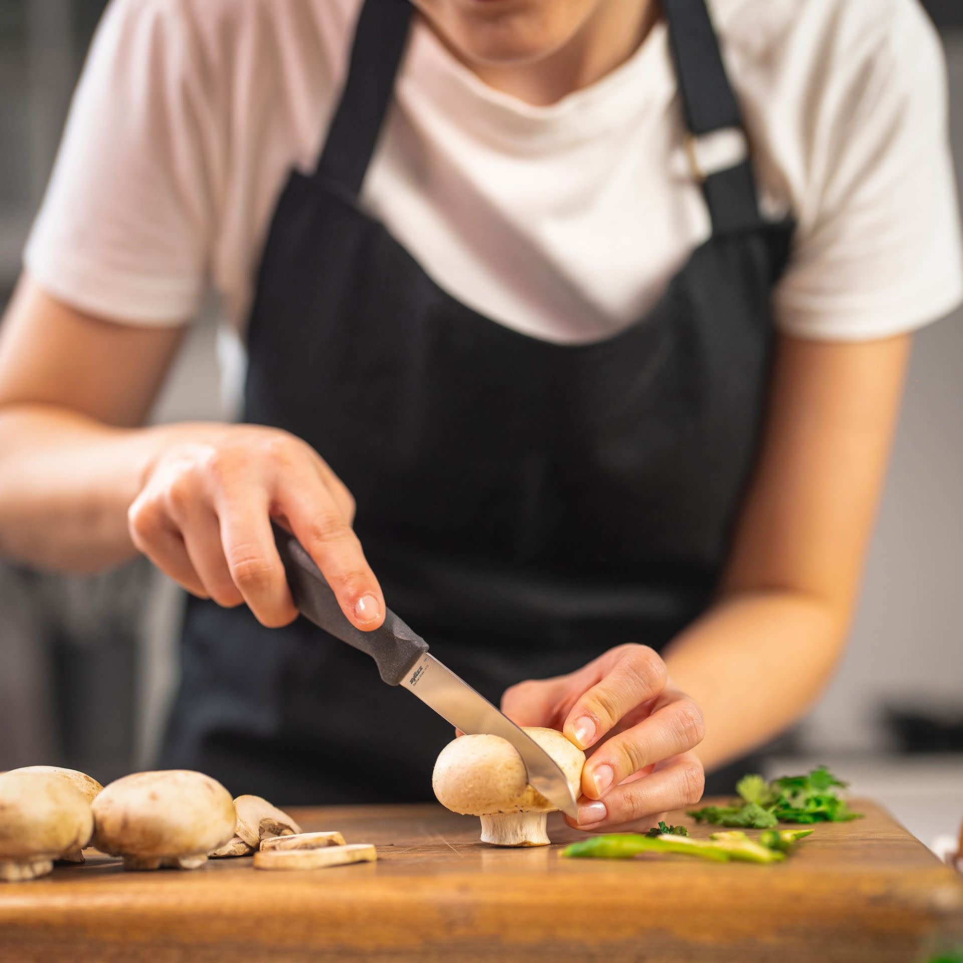 The Zyliss 9 cm Vegetable Knife is a must-have for everyday kitchen prep. With its slim blade, it’s ideal for peeling, pitting, and finely cutting fruits and vegetables. The durable German stainless steel blade ensures long-lasting sharpness and precision. Its ergonomic handle, crafted with up to 50% eco-friendly wheat straw, offers a secure, comfortable grip while reducing plastic use. For safe storage, the knife includes a transparent blade sheath that fits neatly into drawers. Lightweight, dishwasher safe, and practical, this knife is perfect for daily tasks like slicing carrots, peeling apples, or prepping herbs.