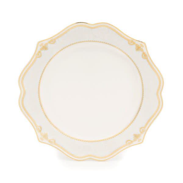 The Versailles Dinnerware set will create an aura of royalty and elegance at every meal. Gold designs scale the pointed edges of each plate combined with swirling patterns at each of the four corners. Embossed patterns on the rim give this set an added touch of detail and elegance that will catch the eye and upgrade every meal.