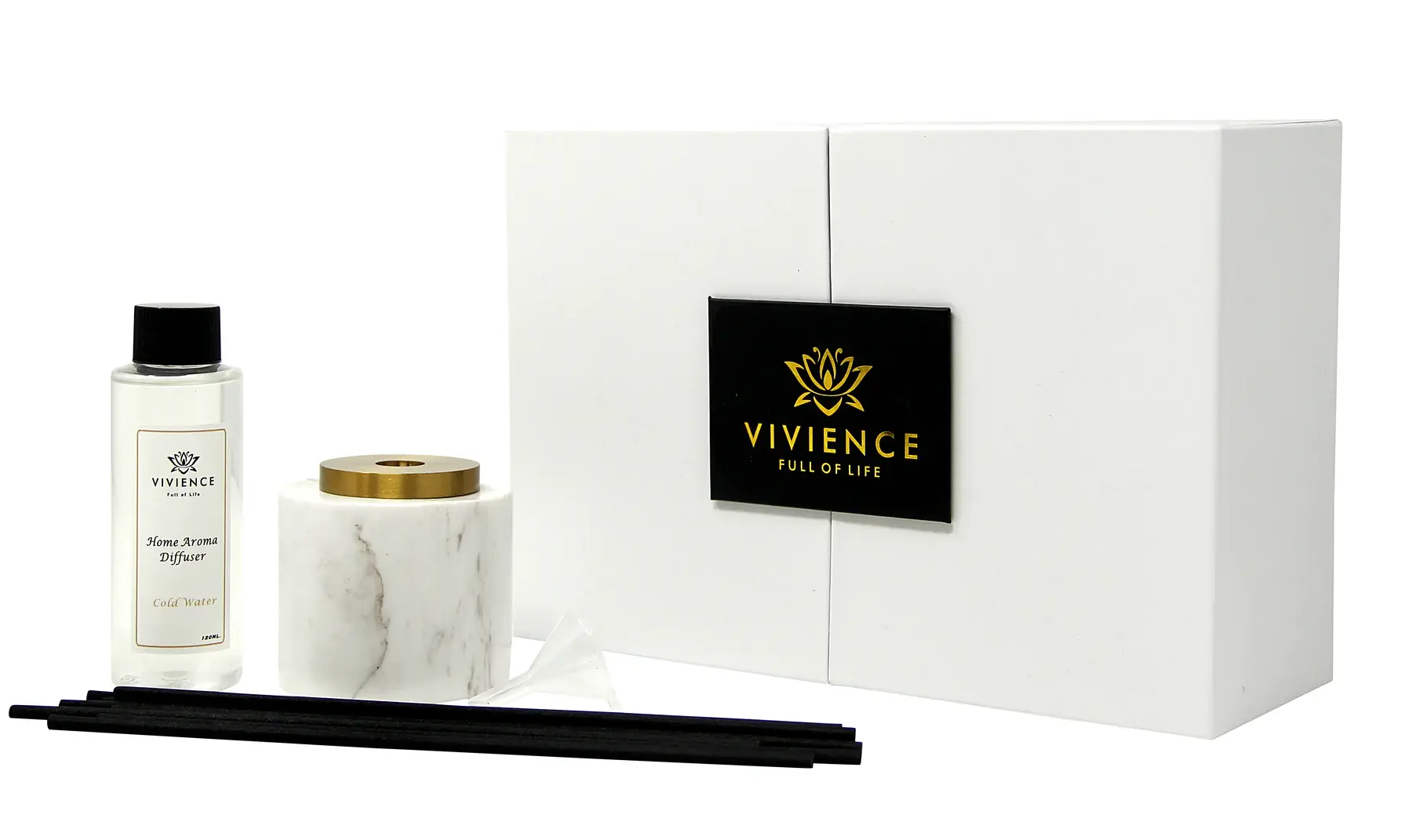 Vivience White Marble Reed Diffuser, "White Flower" Scent
