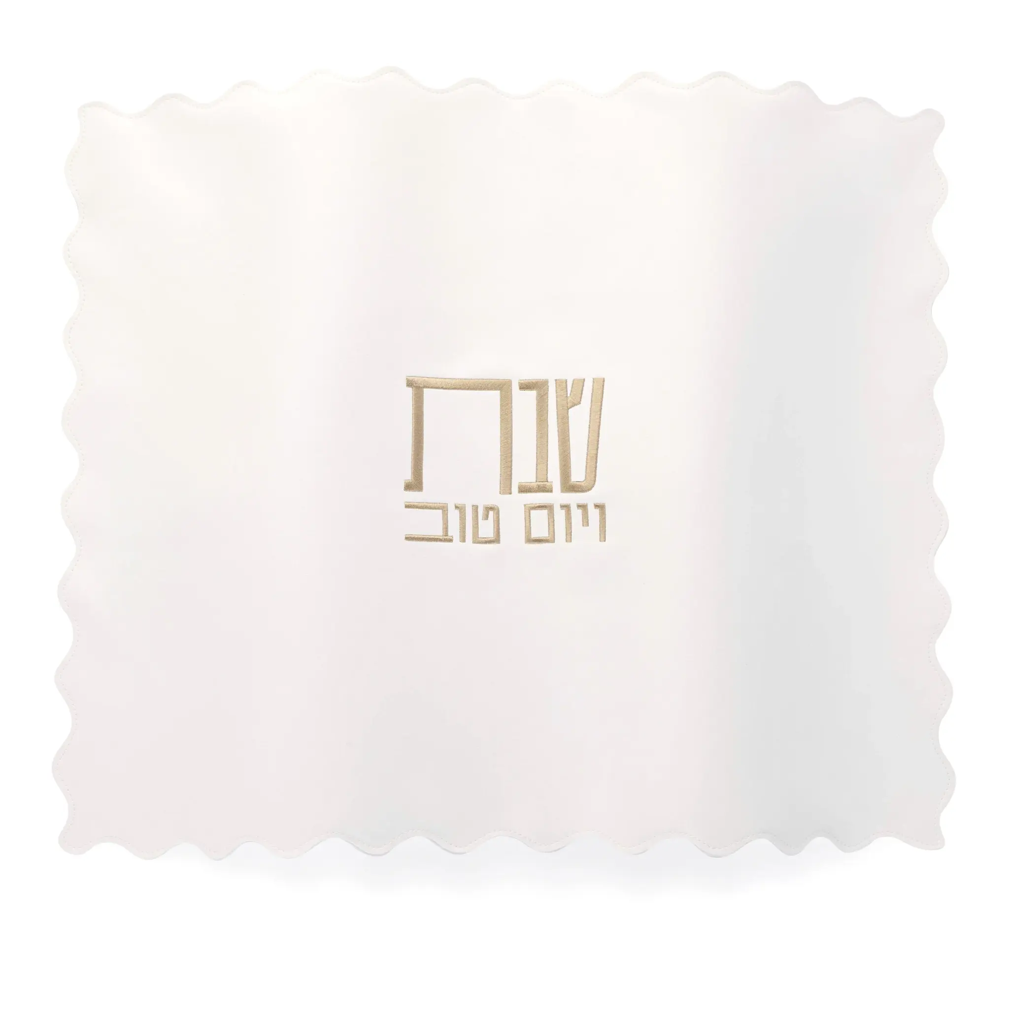 Waterdale Leather Challah Cover Scalloped Edge White & Gold