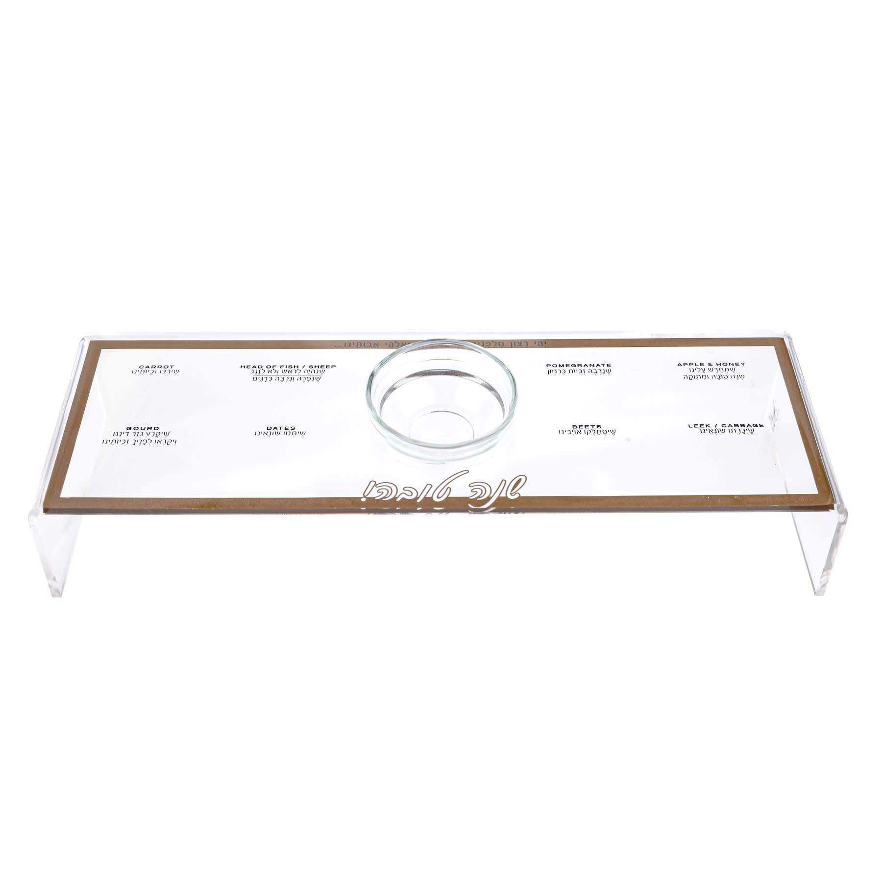Waterdale Simanim Tray 12"x4"x2" Stands Over Plate Gold (Includes Glass Honey Dish Insert)
