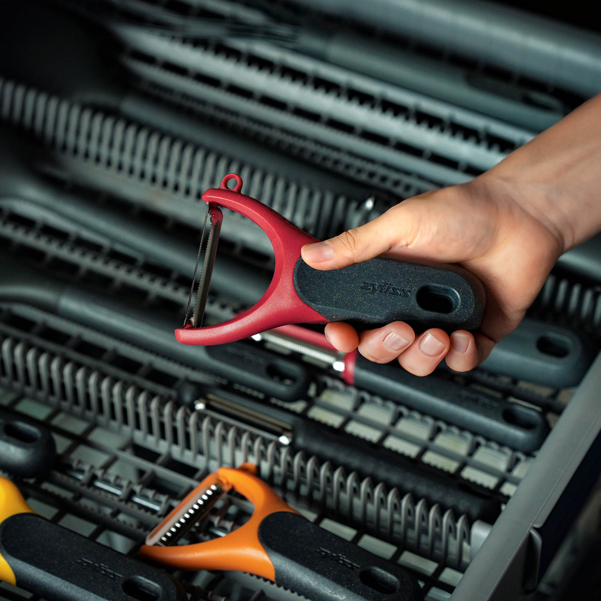 Peel tomatoes, kiwis, and soft fruits effortlessly with the Zyliss Y peeler. Features a micro-serrated blade, eco wheat straw handle, and integrated eye cutter for blemishes. Durable, ergonomic, and dishwasher safe.